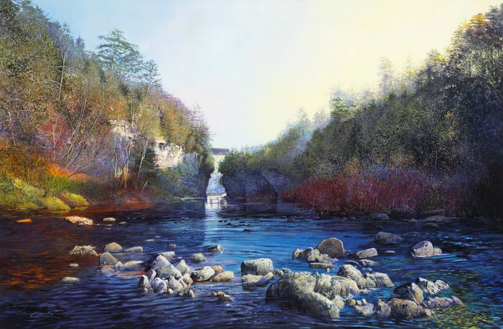 "East Light Irvine River" oil, 51x36"