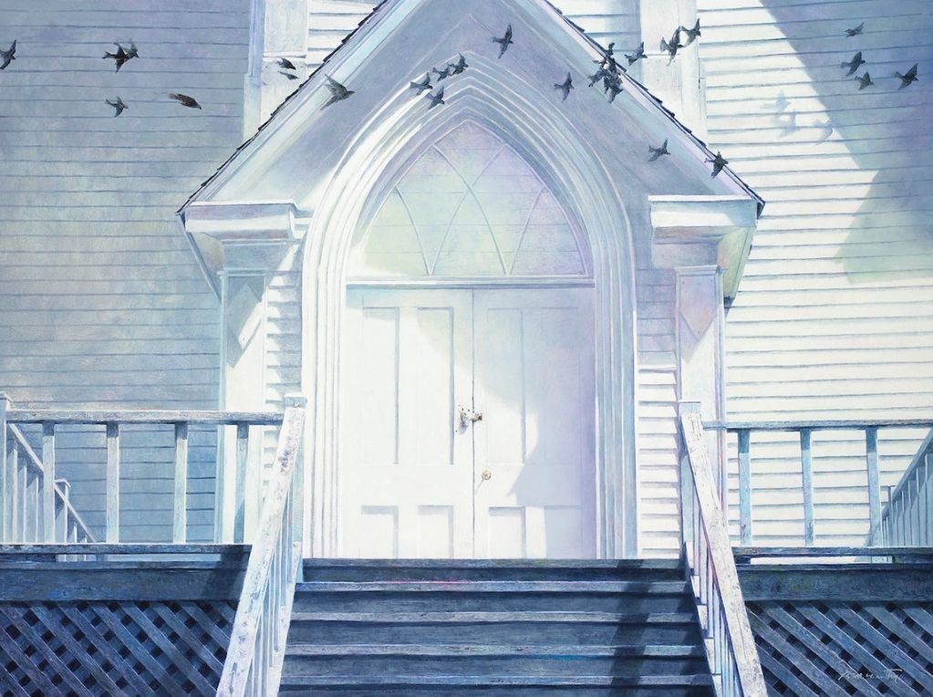 "The Fleeing Flock," oil, 35x45"